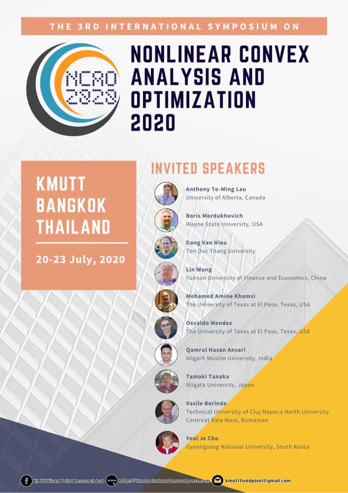 The First International Symposium on Numerical Convex Analysis and Applications (NCAO) was organized in KMUTT in 2018 and due to its great success, we henceforth tried to organize the same event every year with an aim to bring together the researchers and enthusiasts in this specific topic. The second International Symposium on Nonlinear Convex Analysis…